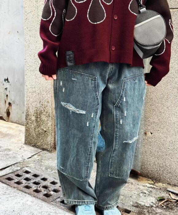每次補貨就會立馬掃空的P.B.P火焰針織衫搭配上寬版丹寧褲!!