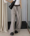 - 褲身左右設置雙褶,結合腰頭延伸至褲口的寬活片,為全件打造動靜皆宜的立體層次。