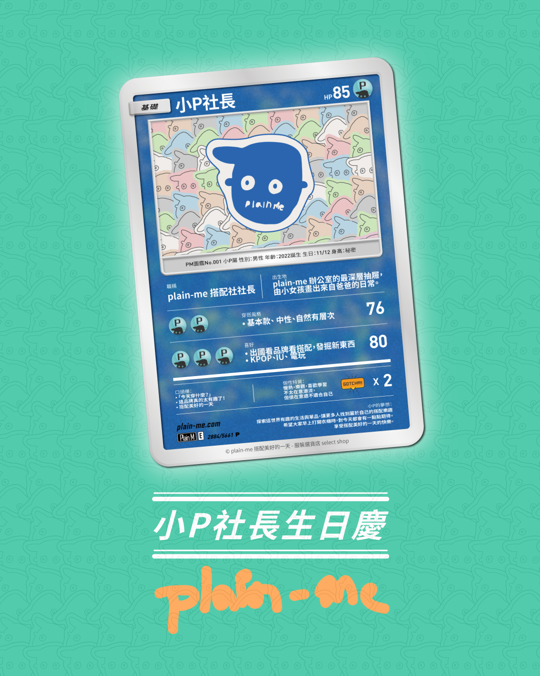 於是,我們給了你們一個暱稱:小 P 股東。代表著每一位喜歡 plain-me、相信穿搭的你。讓我們正式歡迎:小 P 社長,生日快樂!plain-me 小 P 社長宇宙,從這裡開始。歡迎加入小 P 社長宇宙,一起享受,搭配美好的一天的快樂。