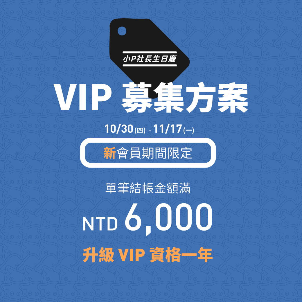 -新會員期間限定單筆結帳金額滿 NTD 6000 升級 VIP 資格一年