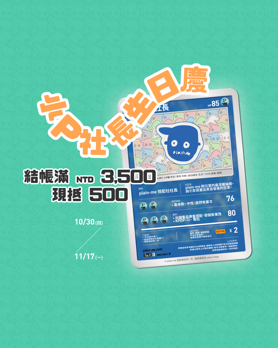 4. 你購物 plain-me 買單,小P社長生日慶 加碼抽購物金