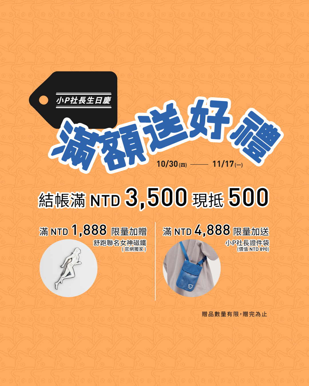 。官網限定,全站滿 NTD 1,888 限量加贈,贈品數量有限送完為止